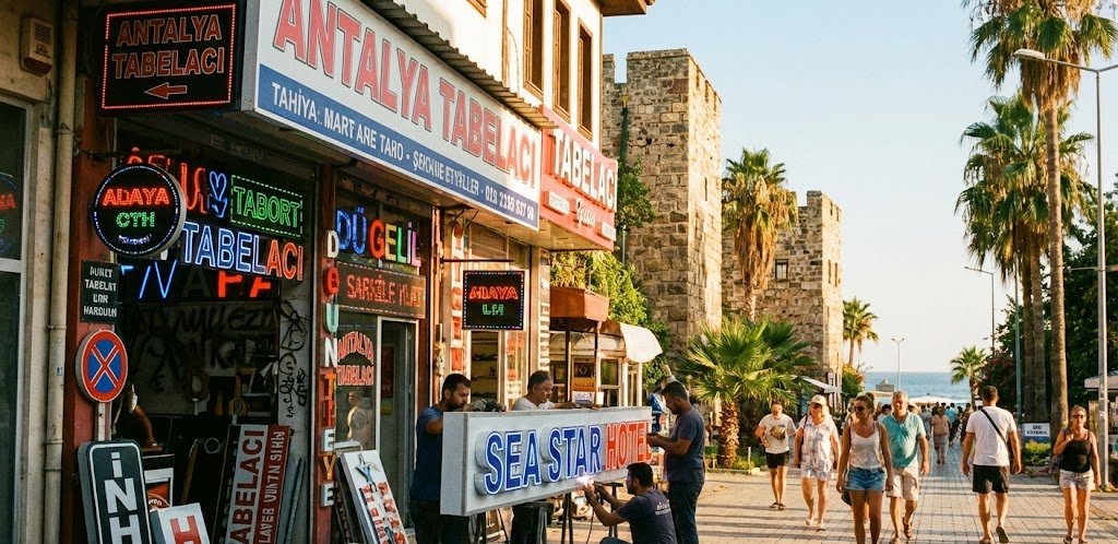 Antalya mağaza tabelası, işletmelerin dış mekânda görünürlüğünü...